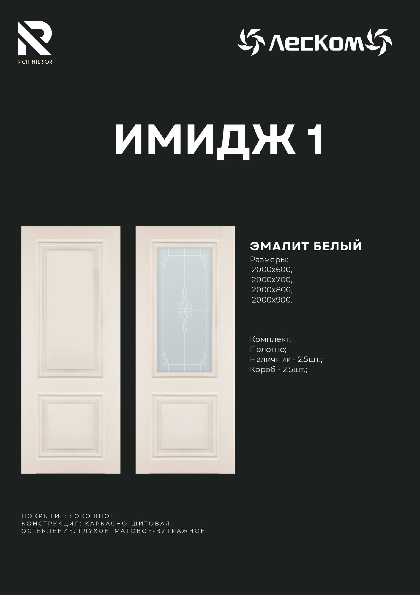 Комплект: полотно, наличник-2,5 шт короб-2,5 шт