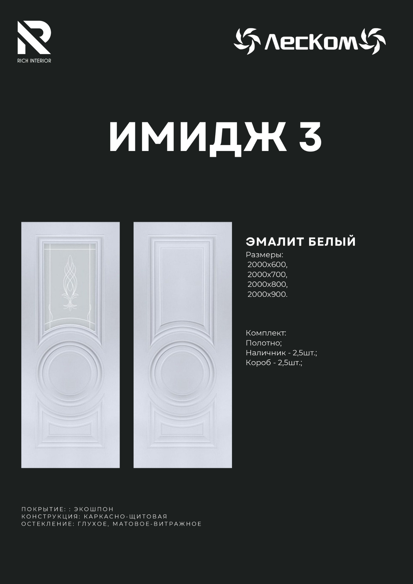 Двери Российского производства, фирмы Леском, модель Имидж-3 Эмалит (белый)
